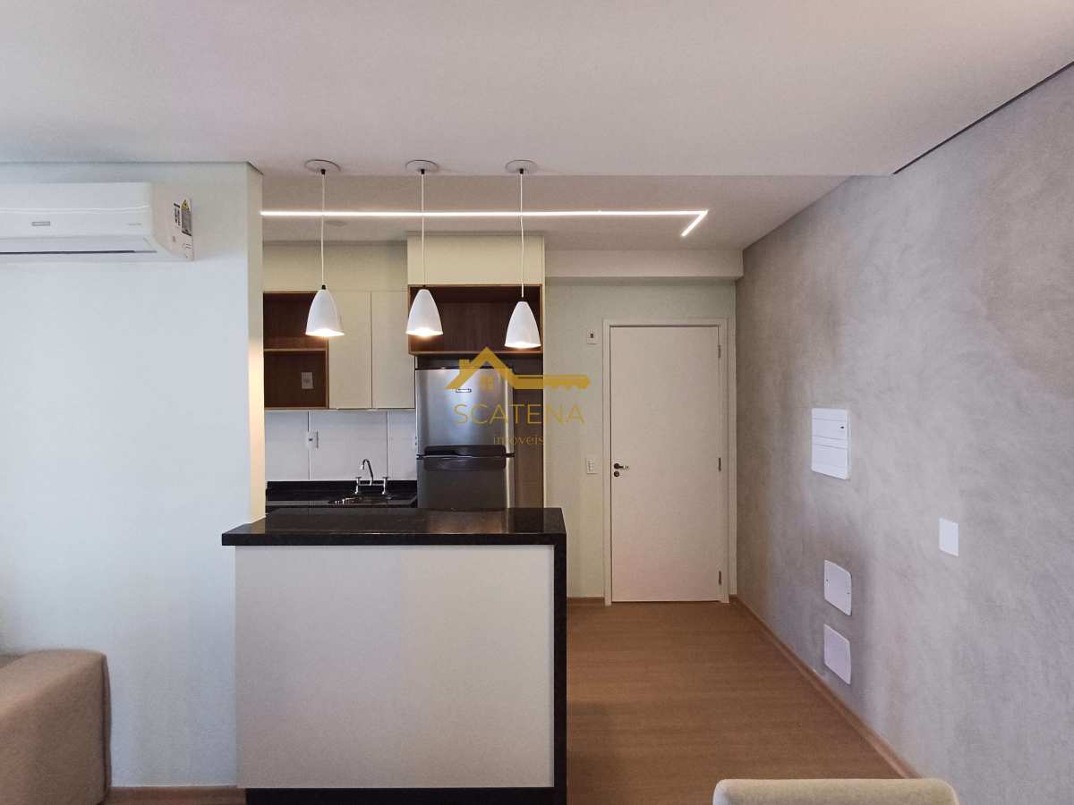 Sala para 02 ambientes (com ar condicionado) integrada cozinha e varanda gourmet com fechamento em vidro