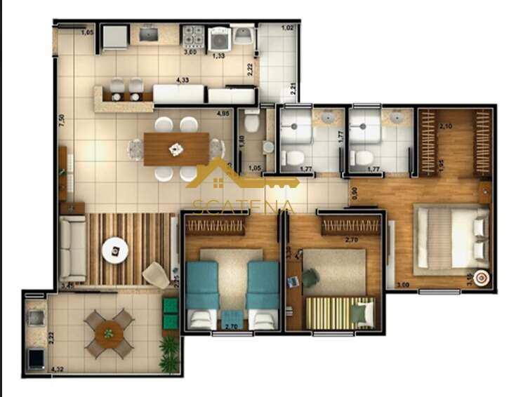 03 dormitórios, sendo 1 suíte com móveis planejados
