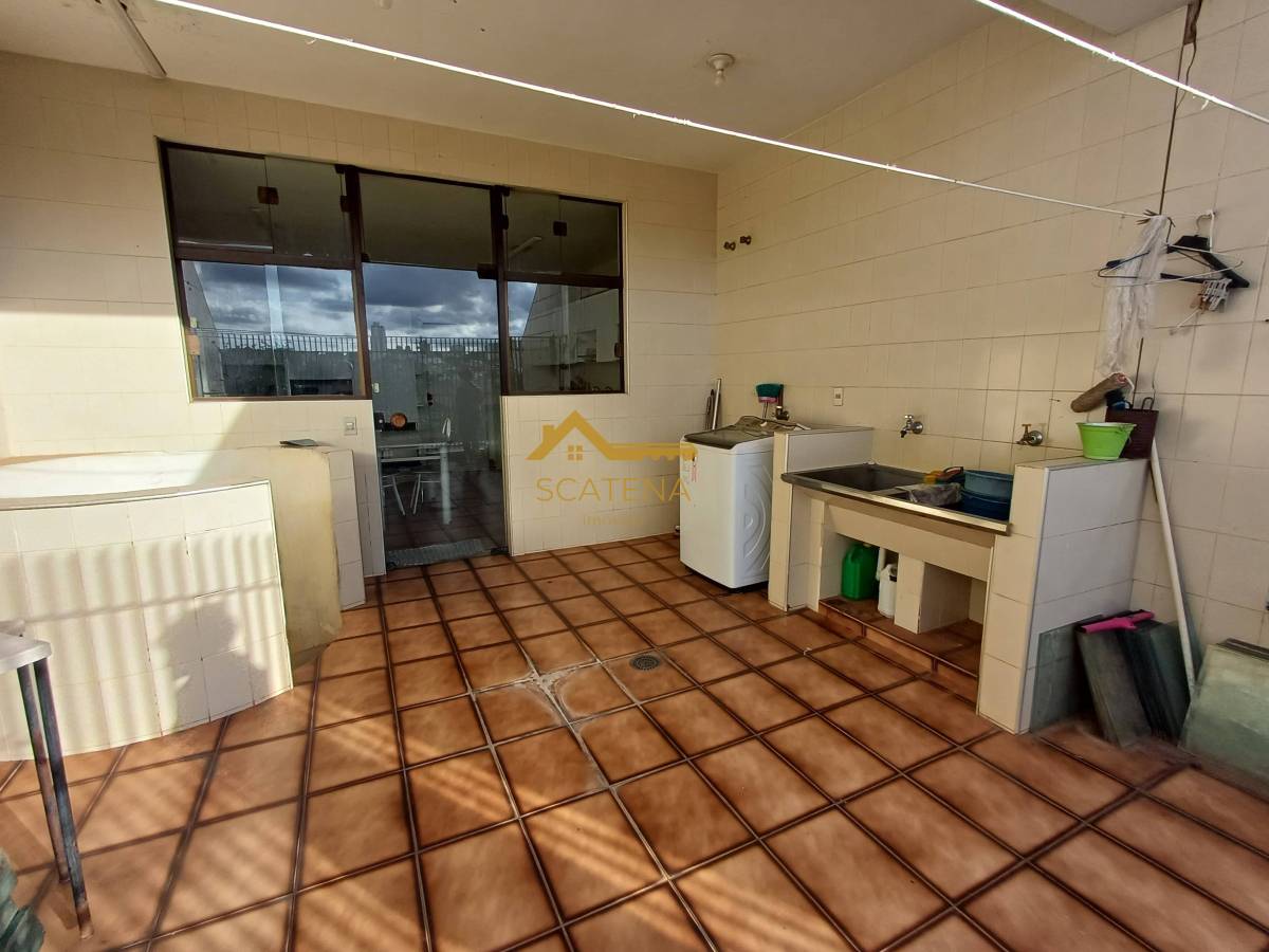 Lavanderia ampla com área coberta e área aberta, incluindo acesso ao piso térreo.