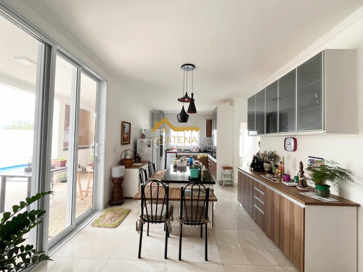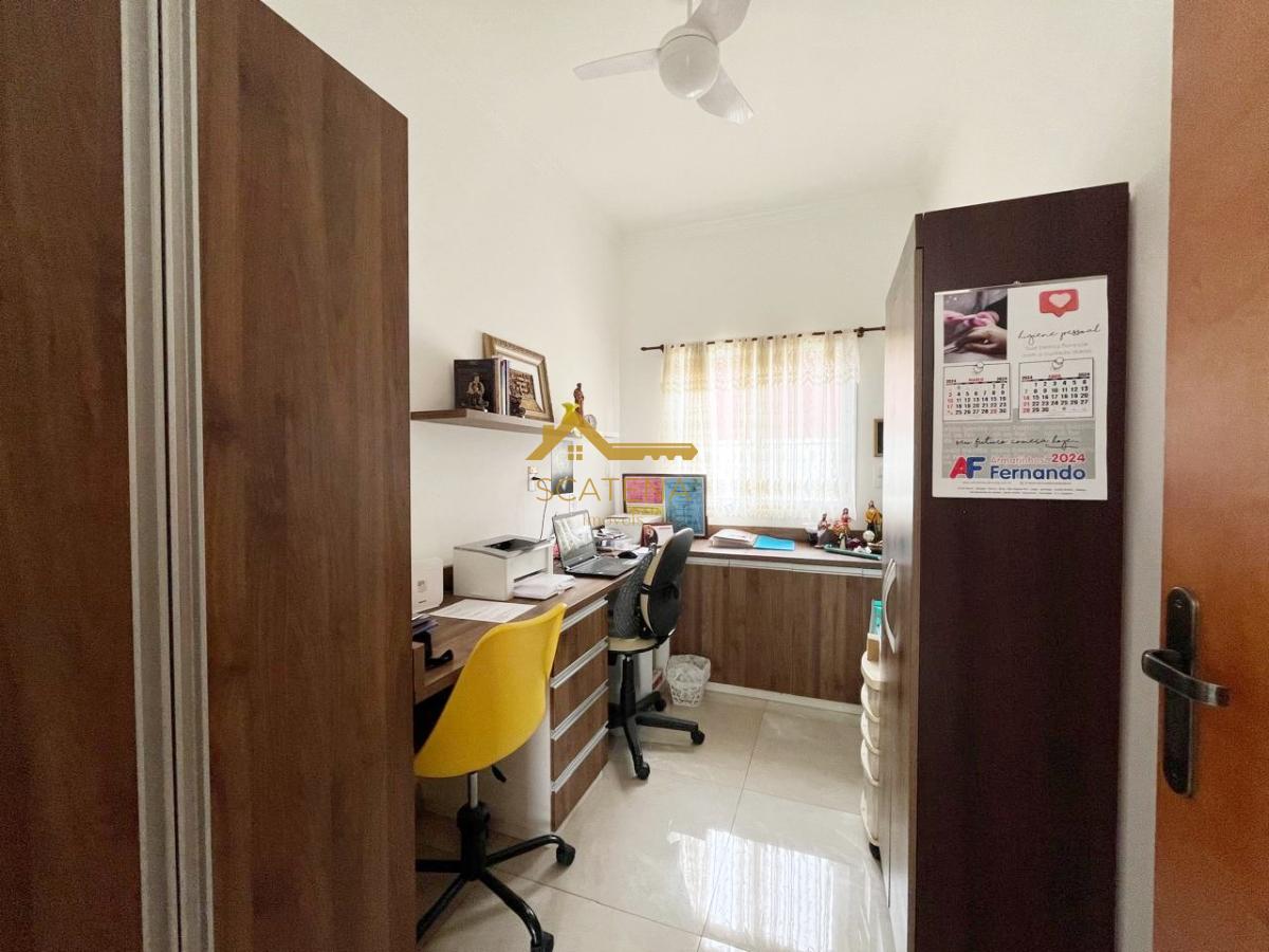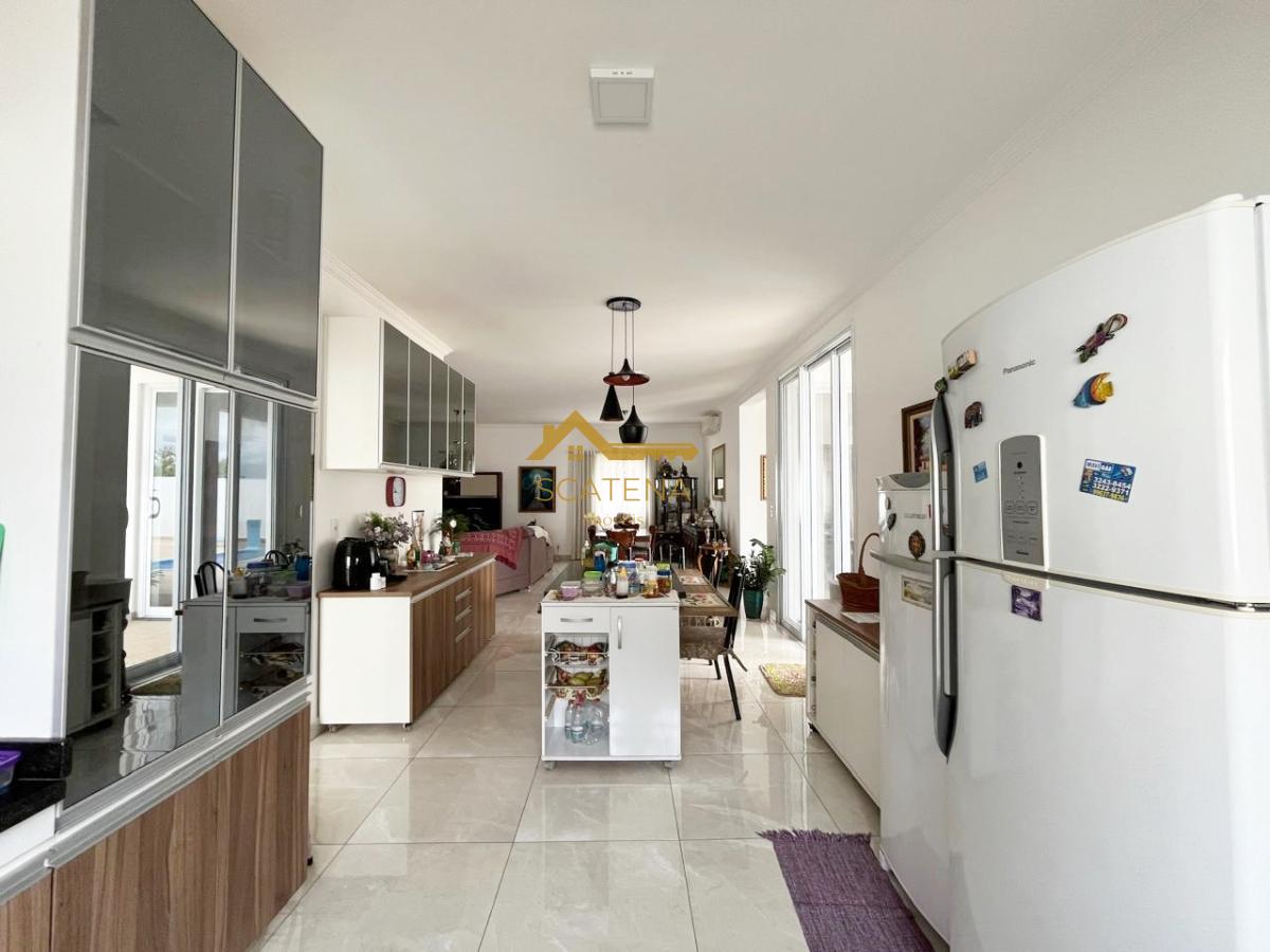 Belíssima casa térrea com sala 2 ambientes, lavabo, cozinha com móveis planejados e integrada com a sala de jantar, área de serviço, 3 suites sendo a master com closet, banheira de hidromassagem, ar condicionado e móveis planejados, todas esquadrias com tela mosqueteira, escritório com móveis planejados, quartinho de despejo, espaço gourmet e wc externo para apoio à piscina.