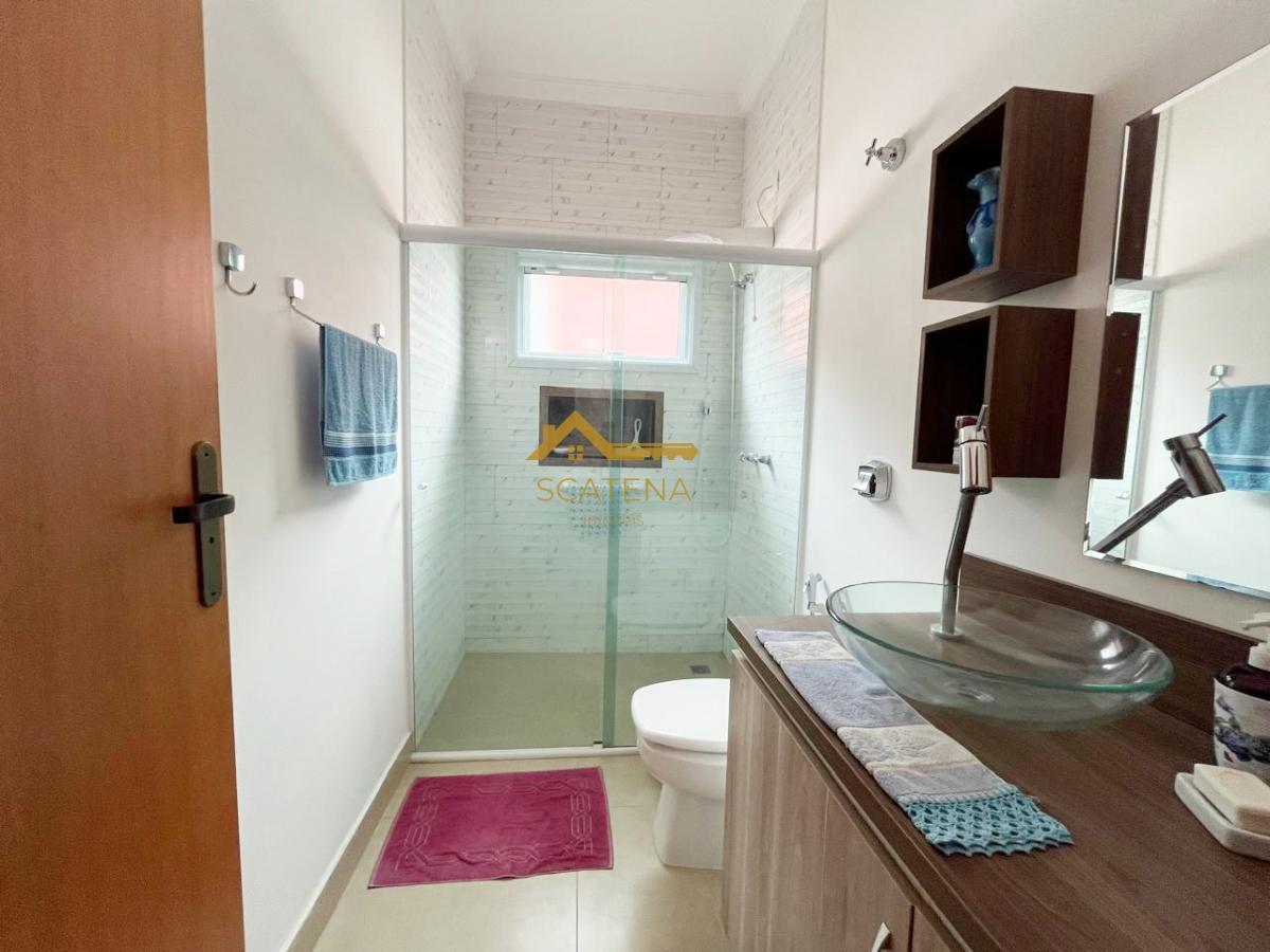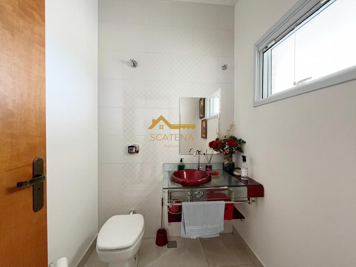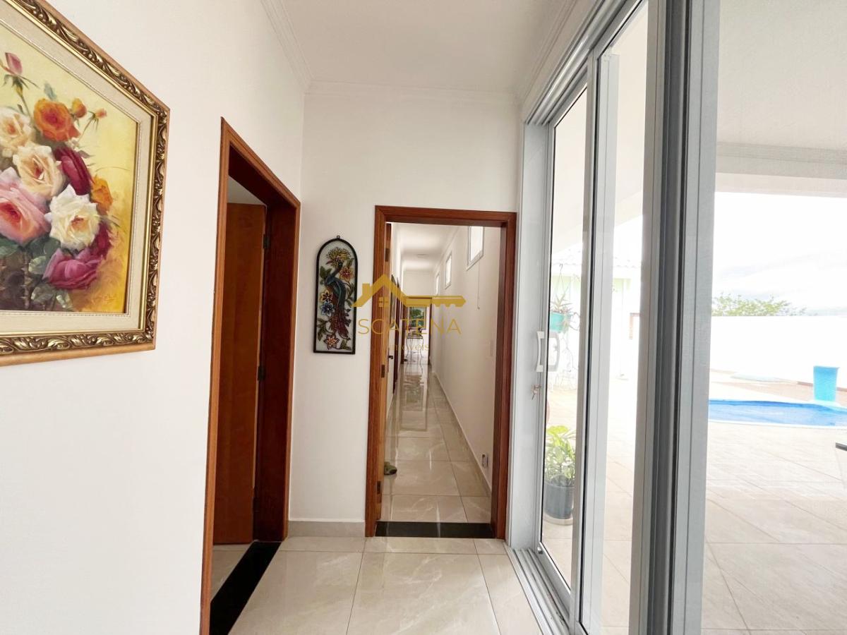 Belíssima casa térrea com sala 2 ambientes, lavabo, cozinha com móveis planejados e integrada com a sala de jantar, área de serviço, 3 suites sendo a master com closet, banheira de hidromassagem, ar condicionado e móveis planejados, todas esquadrias com tela mosqueteira, escritório com móveis planejados, quartinho de despejo, espaço gourmet e wc externo para apoio à piscina.