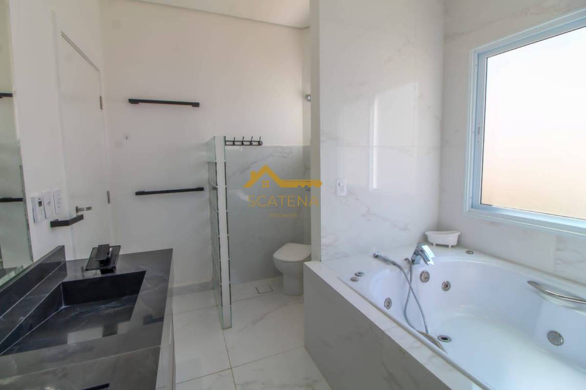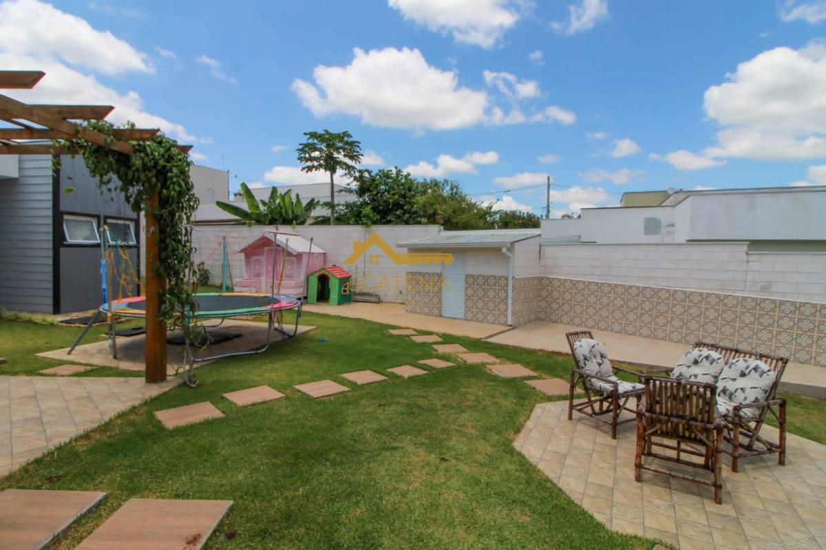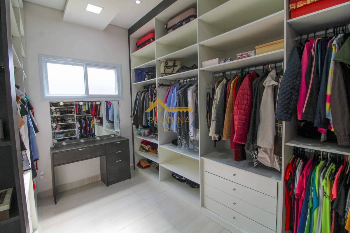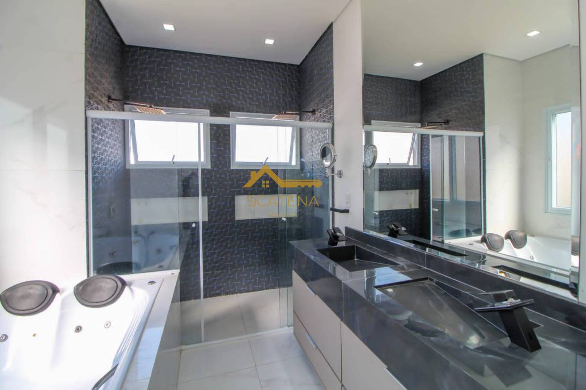 espaço gourmet com churrasqueira, forno de pizza, piscina com raia, 02 WCs, academia, canil, cinema com poltronas e retroprojetor, 04 suítes com ar condicionado, 01 closet na suíte Master (tem 2 chuveiros e banheira), garagem para 2 carros coberta e 4 descobertas, além da extensão de frente da casa que tem 50 metros.