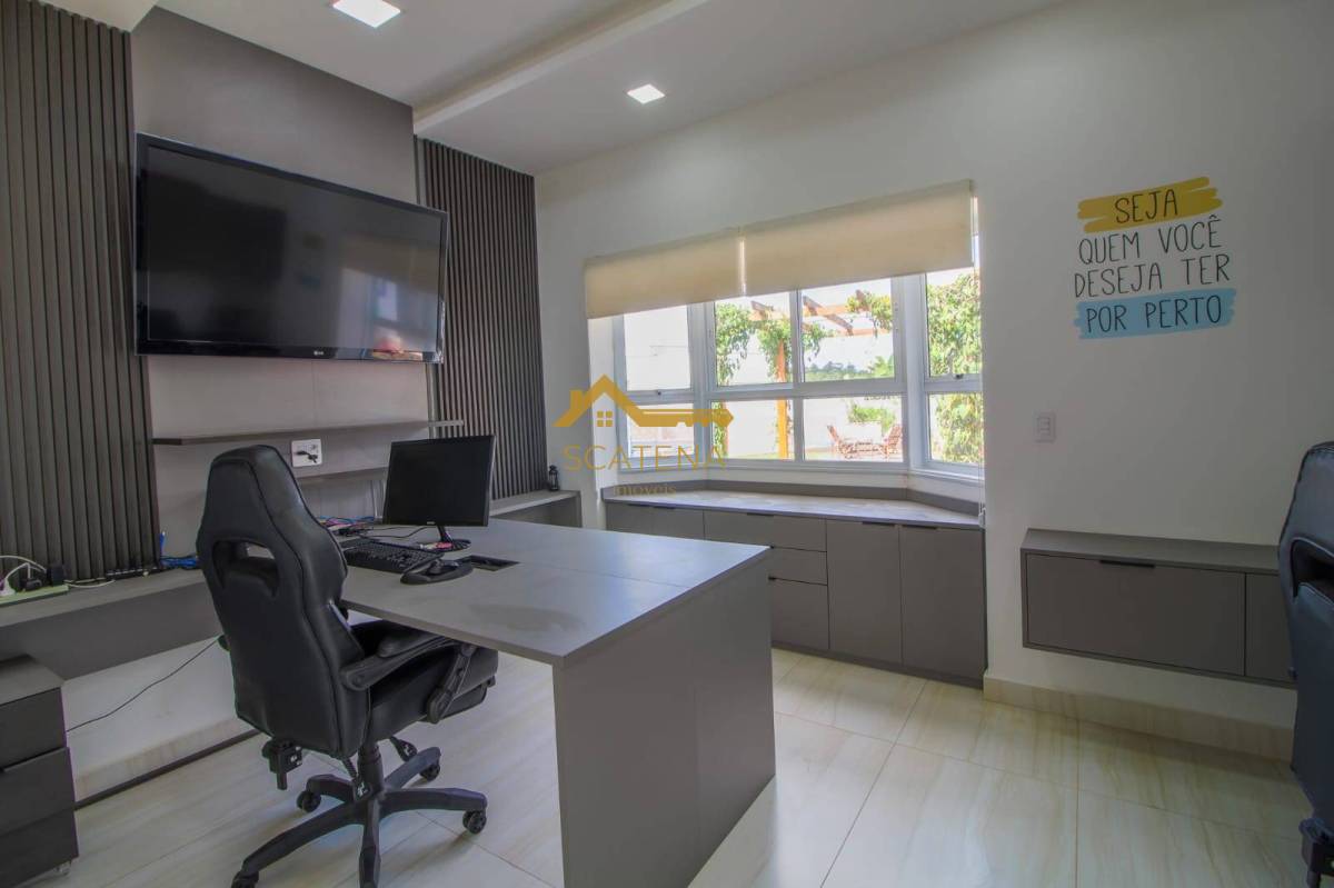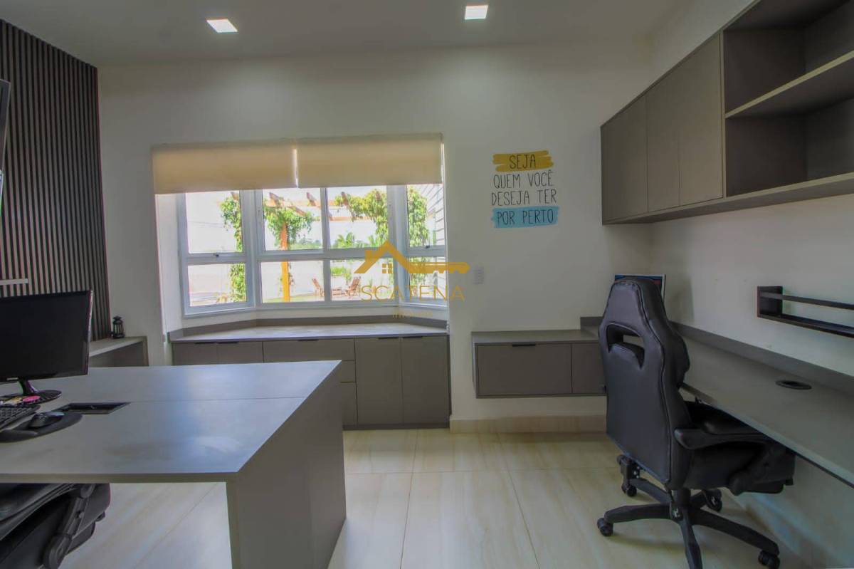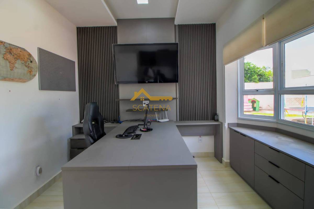 Possui escritório todo modulado com vista para a área de lazer.