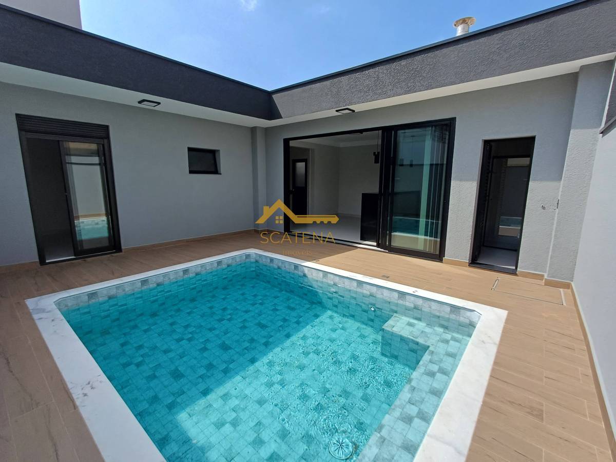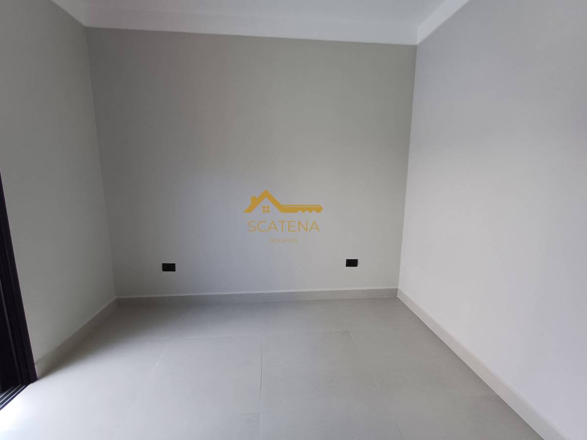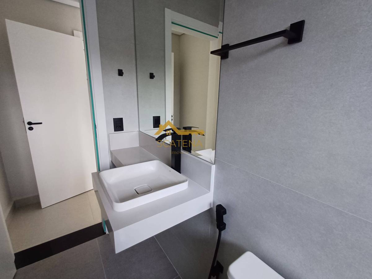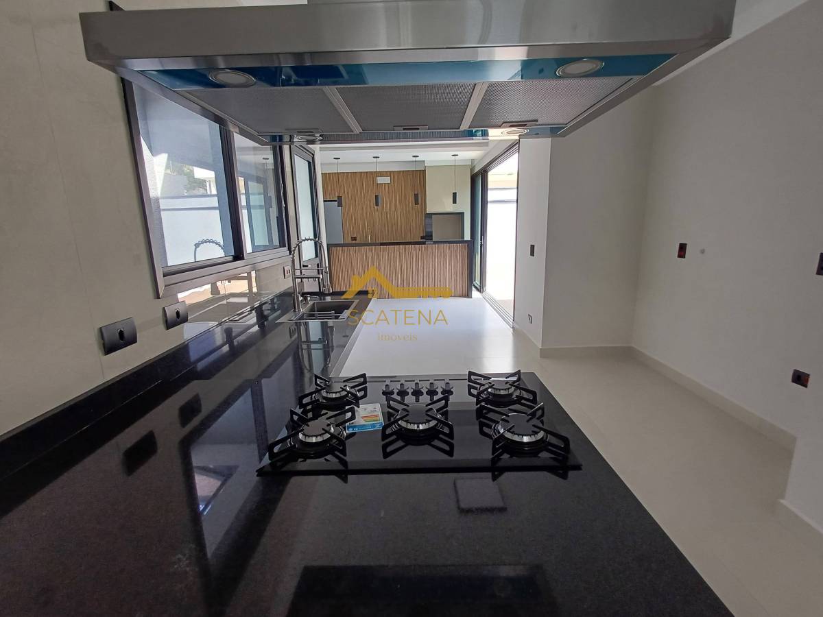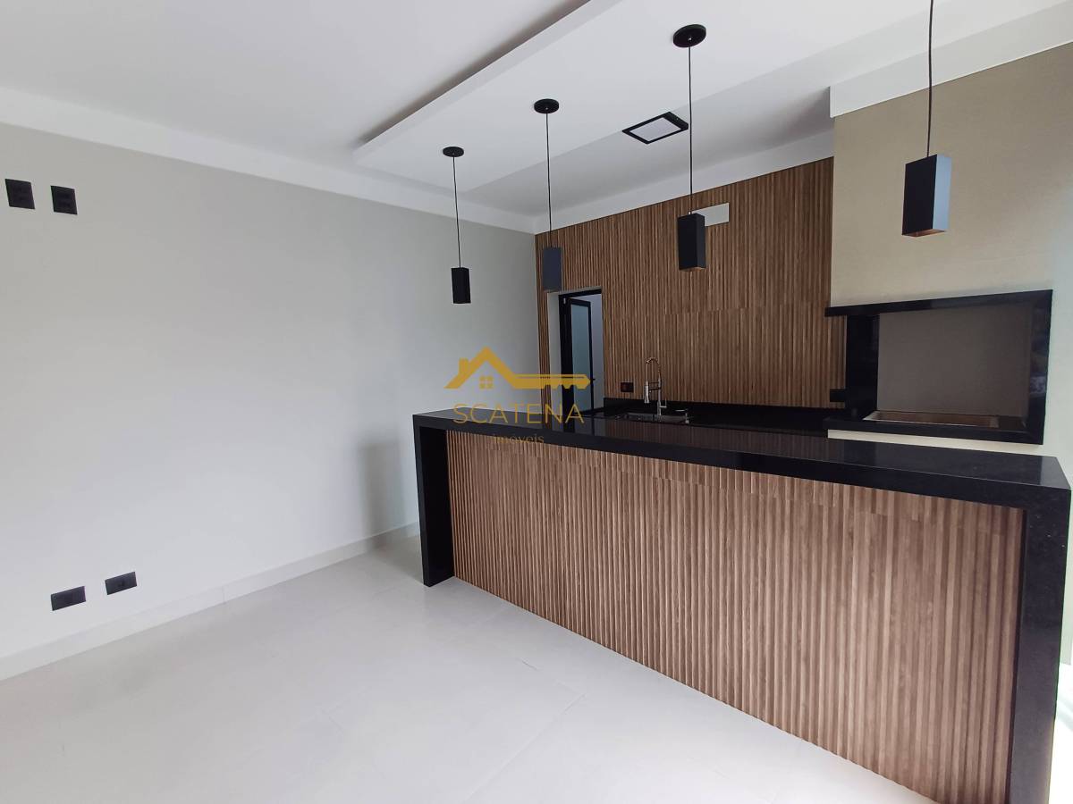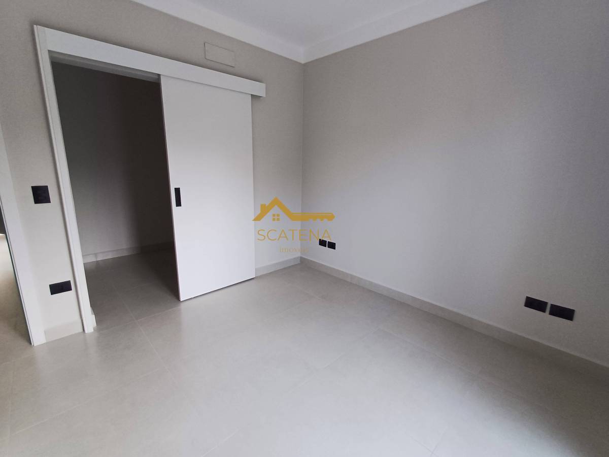 Janelas com persianas automática, energia fotovoltaica, boiler de 500 litros, porcelanato fosco e esquadrias pretas.