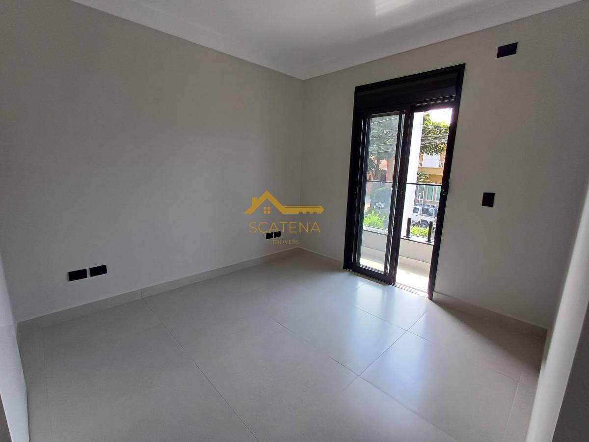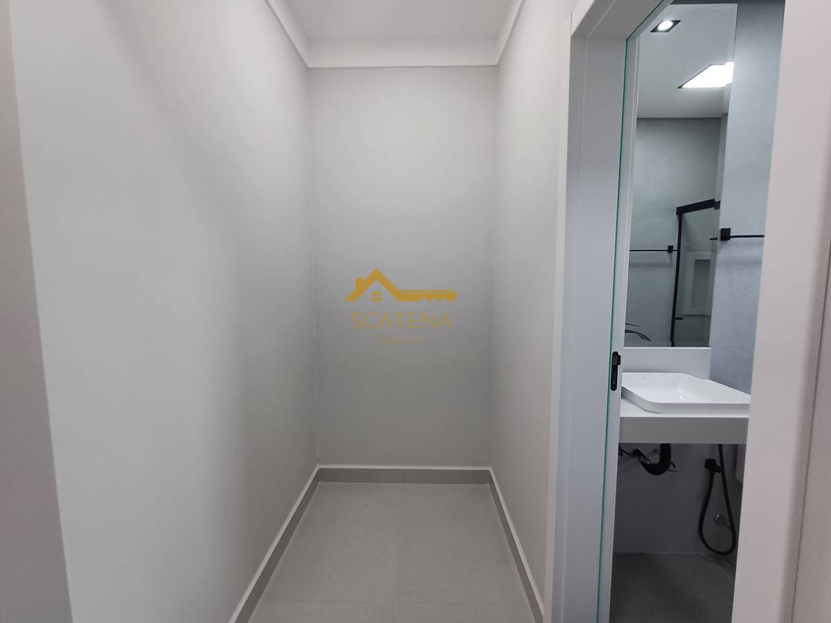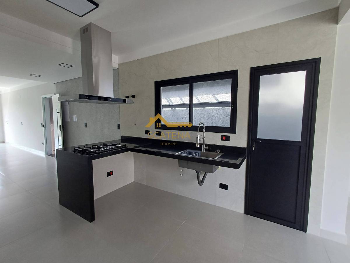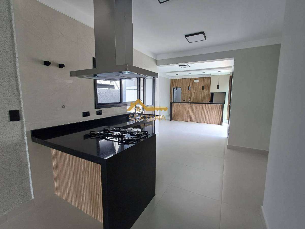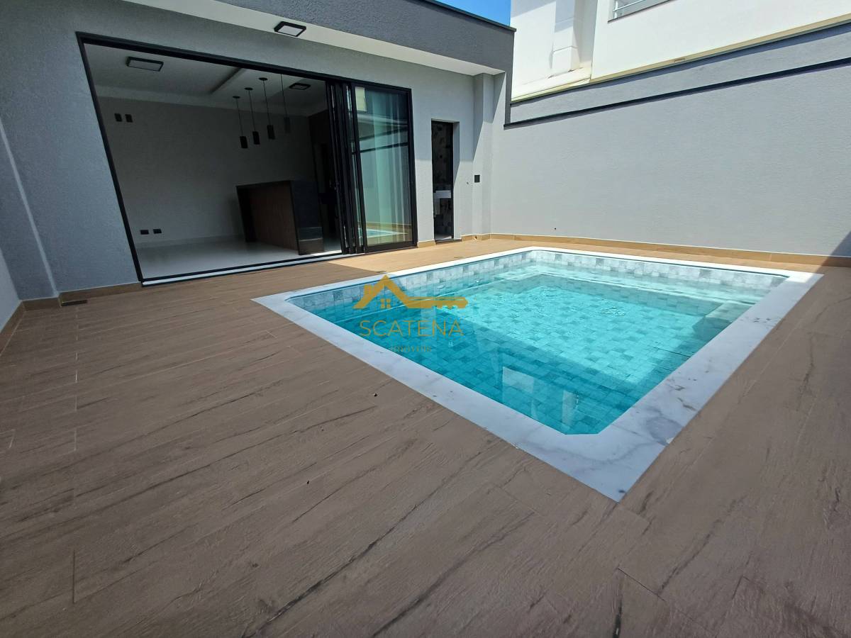 Janelas com persianas automática, energia fotovoltaica, boiler de 500 litros, porcelanato fosco e esquadrias pretas.