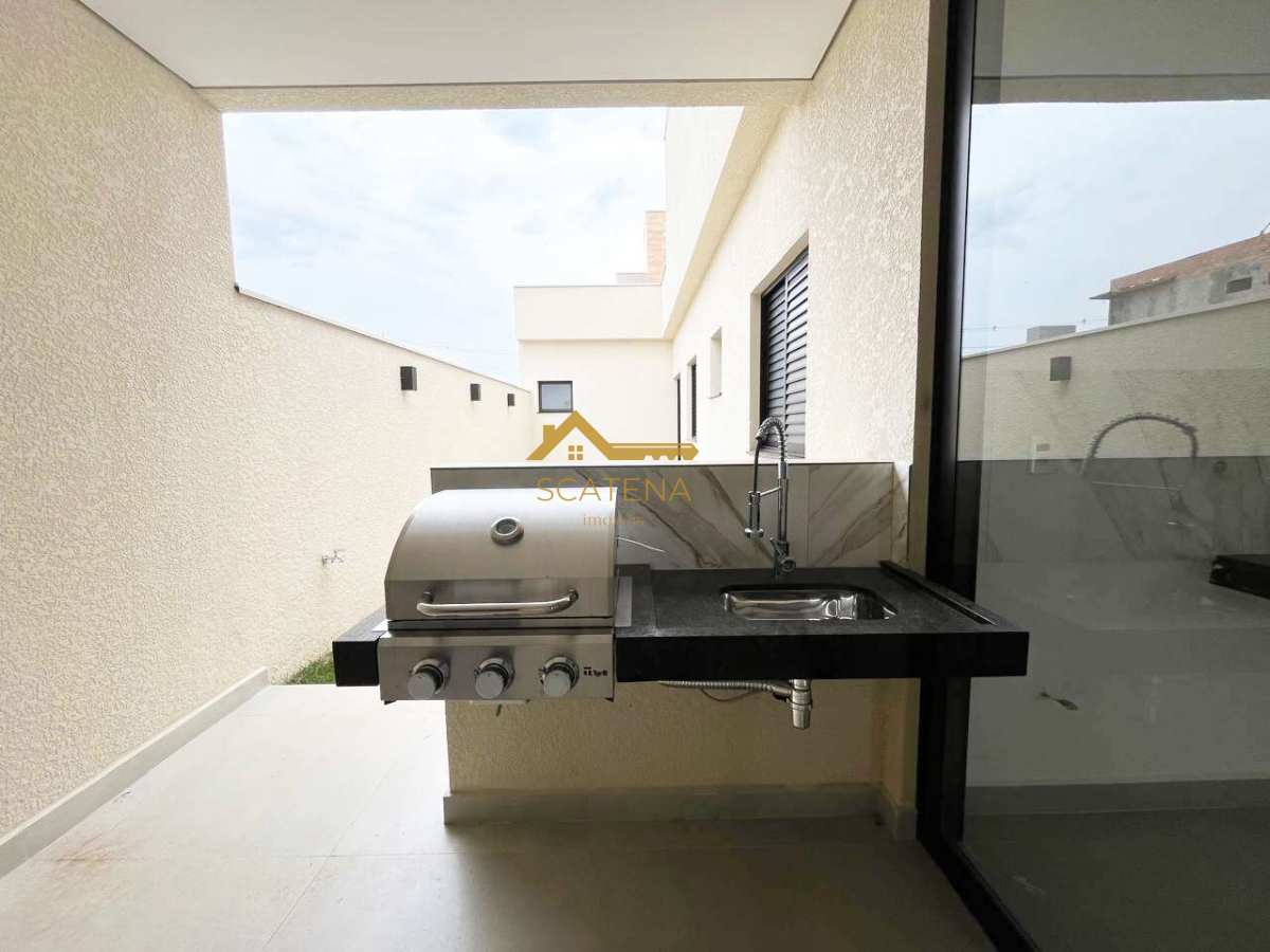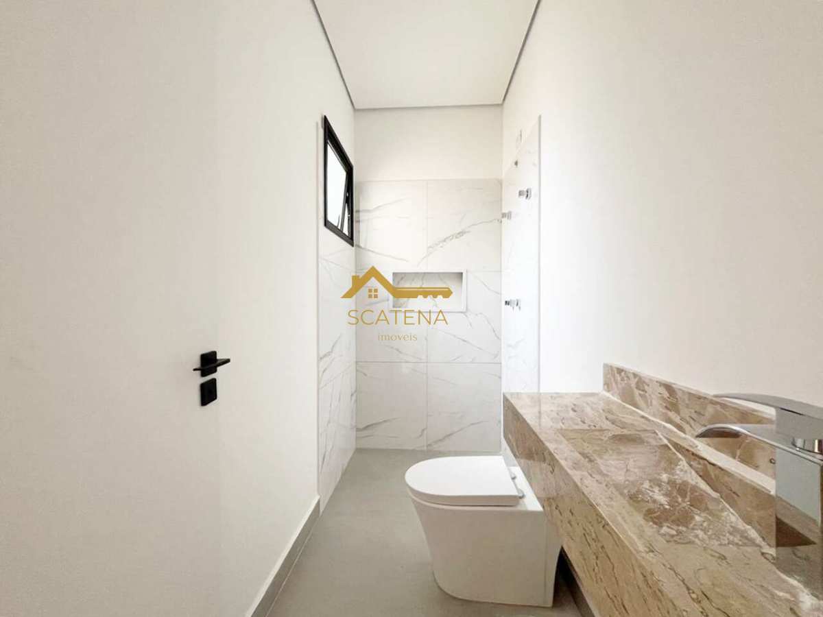 Conta com 3 dormitórios (sendo 1 suíte), lavabo, sala com pé direito duplo, cozinha integrada e um incrível espaço gourmet com churrasqueira a gás. O acabamento é de alto padrão: porcelanato de grandes dimensões nas áreas sociais e laminado nos dormitórios, garantindo beleza e conforto térmico.