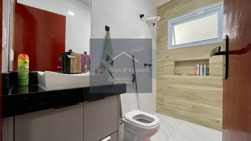 Casa repleta de detalhes como o rack com ripado, pintura em cimento queimado e muito modulados pelo imovel cozinha com coifa em inox, modulados na área gourmet, área de serviço e dormitórios suite.