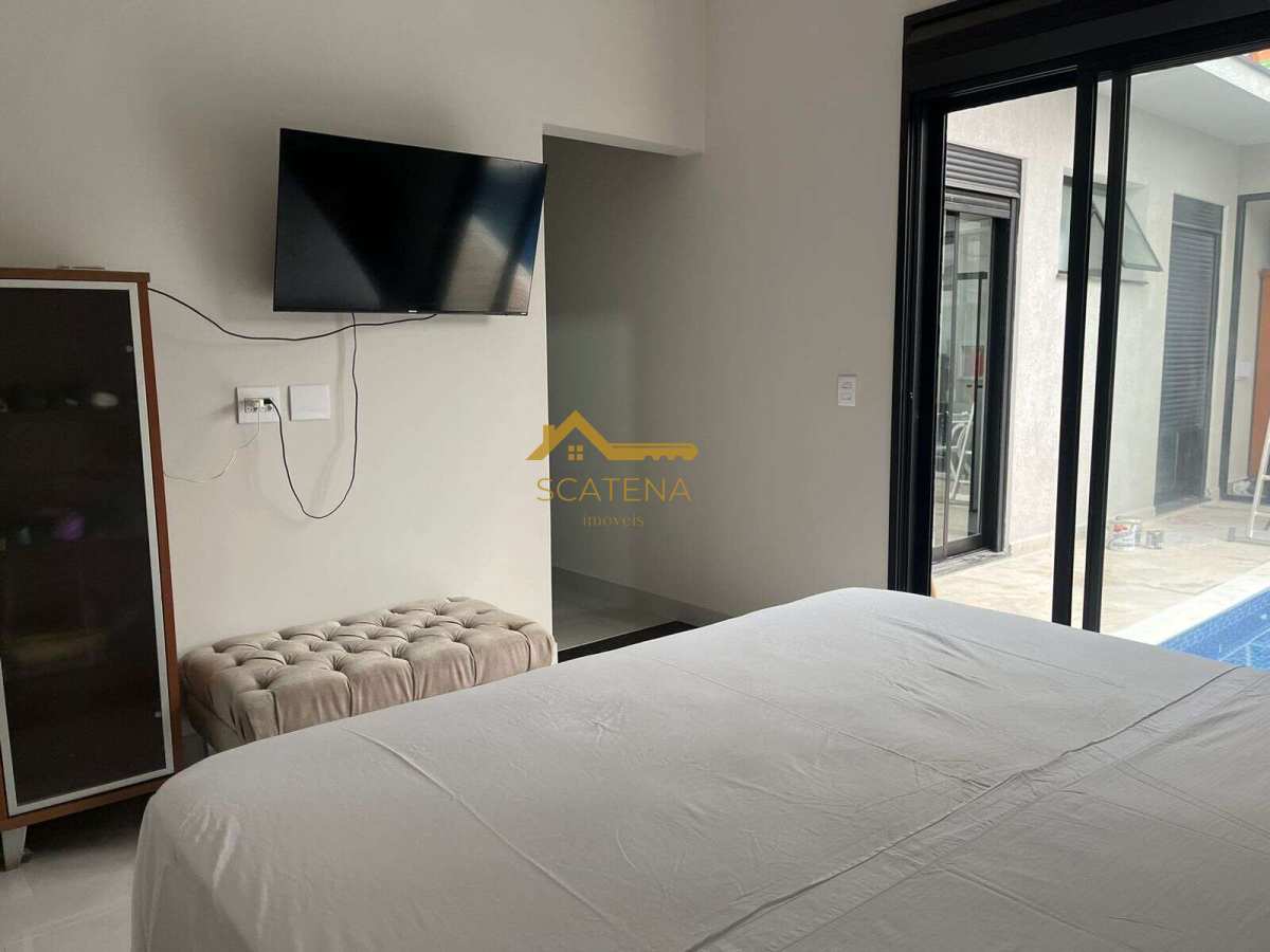 03 suítes, sendo uma master com closet, todas os quartos com armários planejados Escritório Lavanderia Sala de estar e sala de TV Cozinha com ilha Área gourmet Piscina Garagem para 4 veículos A casa possui 196 m² de construção em um terreno de esquina de 300 m².