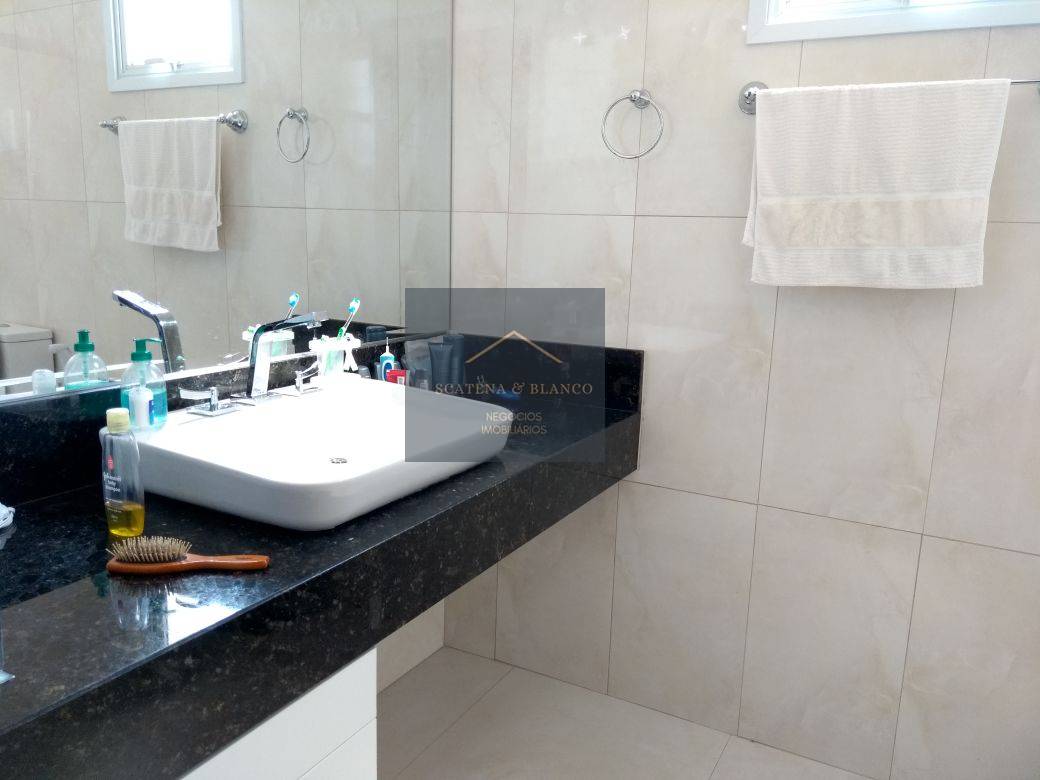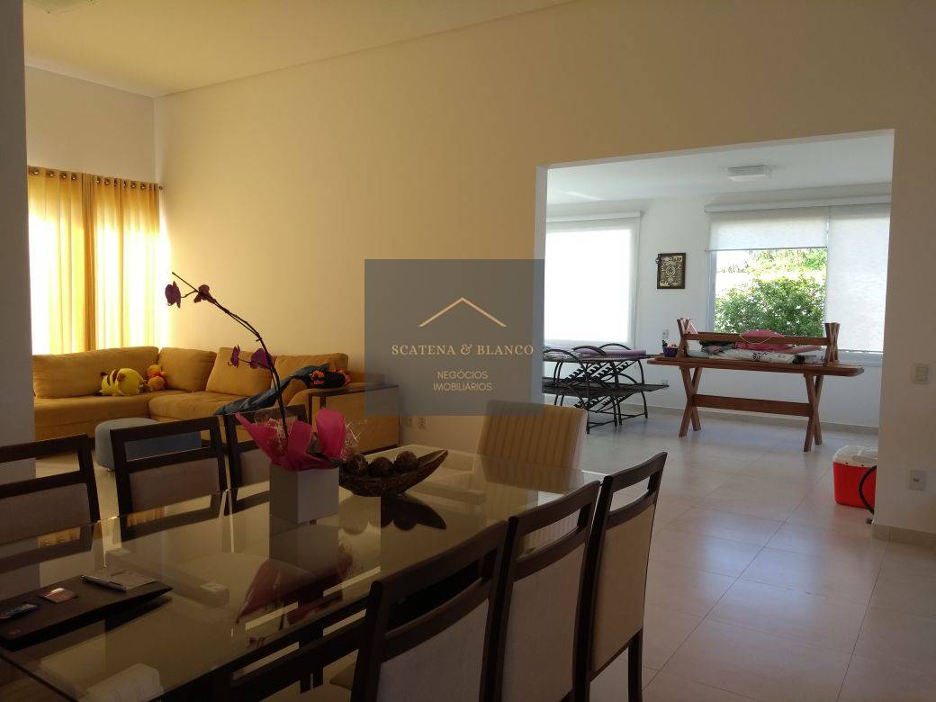 Casa térrea em condomínio muito arborizado, com segurança 24 horas em localização privilegiada. Terreno com 1.400 m2 e área construída de 315 m2. 3 suítes, sala dois ambientes, sala de TV, cozinha modulada, área gourmet, amplo jardim com piscina.
