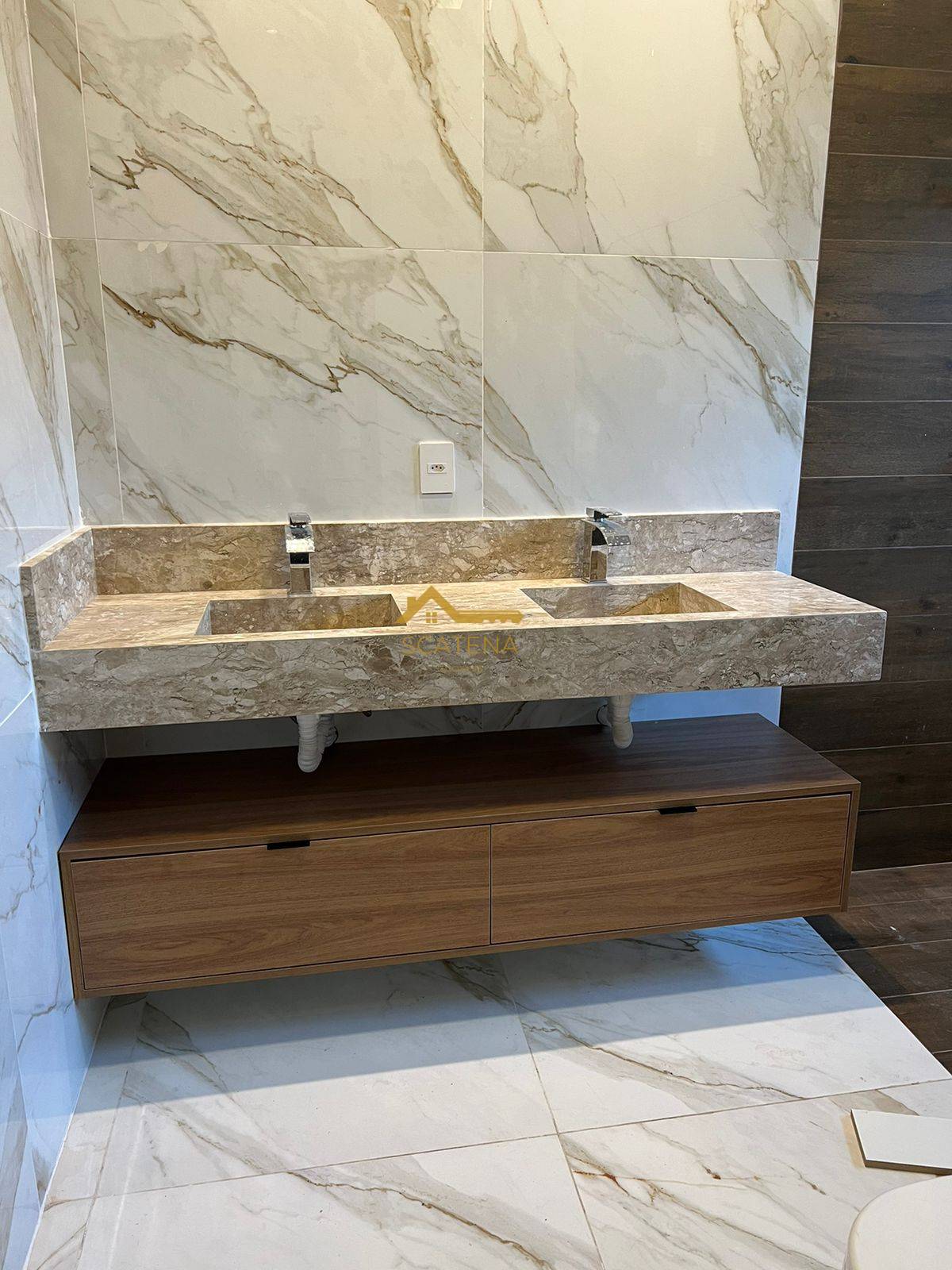 São 243 m² de área construída, sendo 3 suítes, master com closet e hidro, wc com pia dupla para o casal, sala com pé direito duplo, sala 2 ambientes, área gourmet com ilha central e será entregue com cooktop, grelha e chopeira, piscina com aquecimento solar, hidro com cromoterapia.