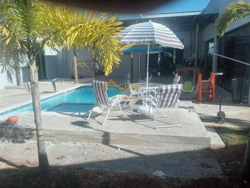 A casa ainda possui um espaço gourmet com piscina, ótima opção para reuniões familiares e amigos.