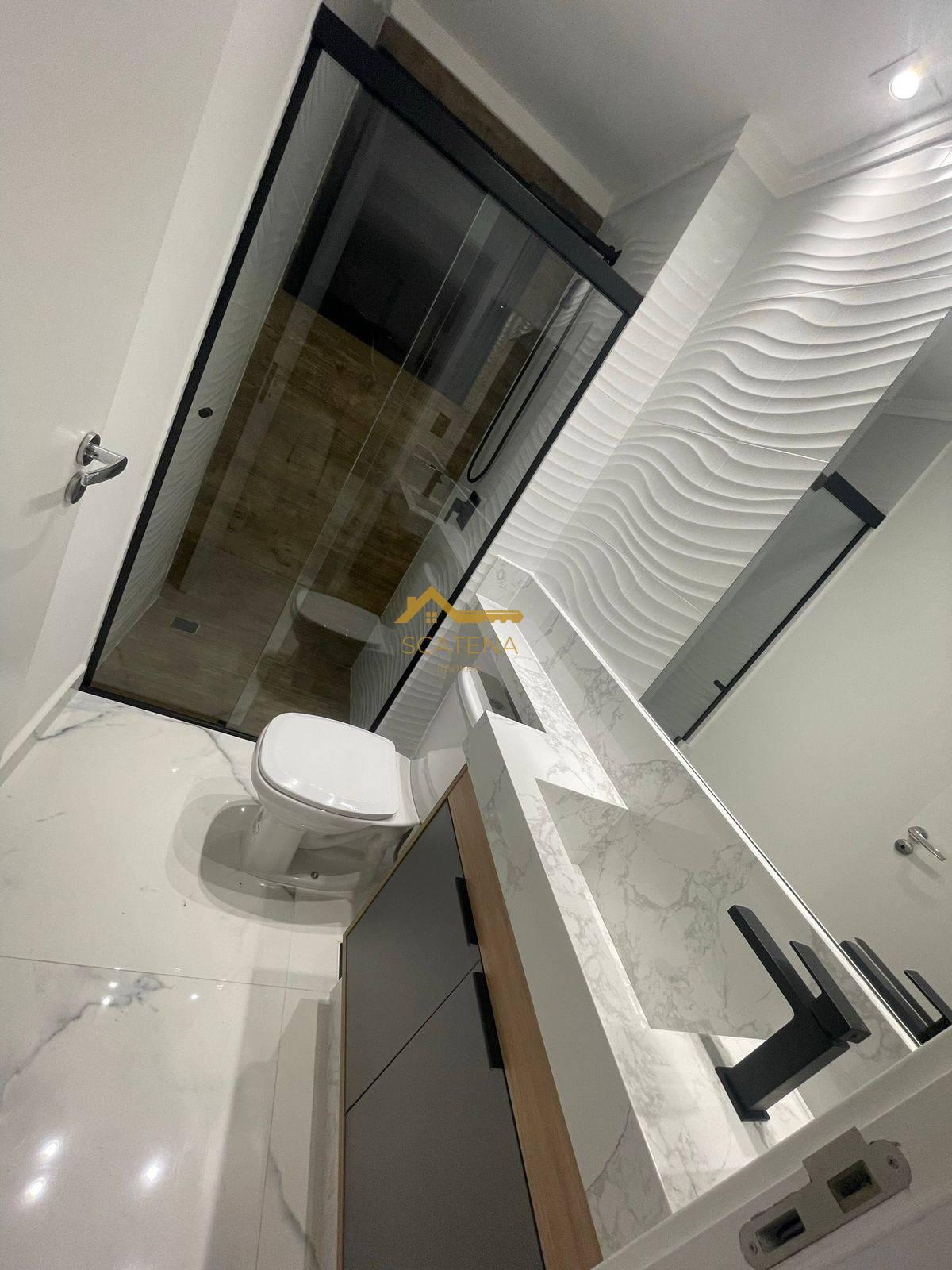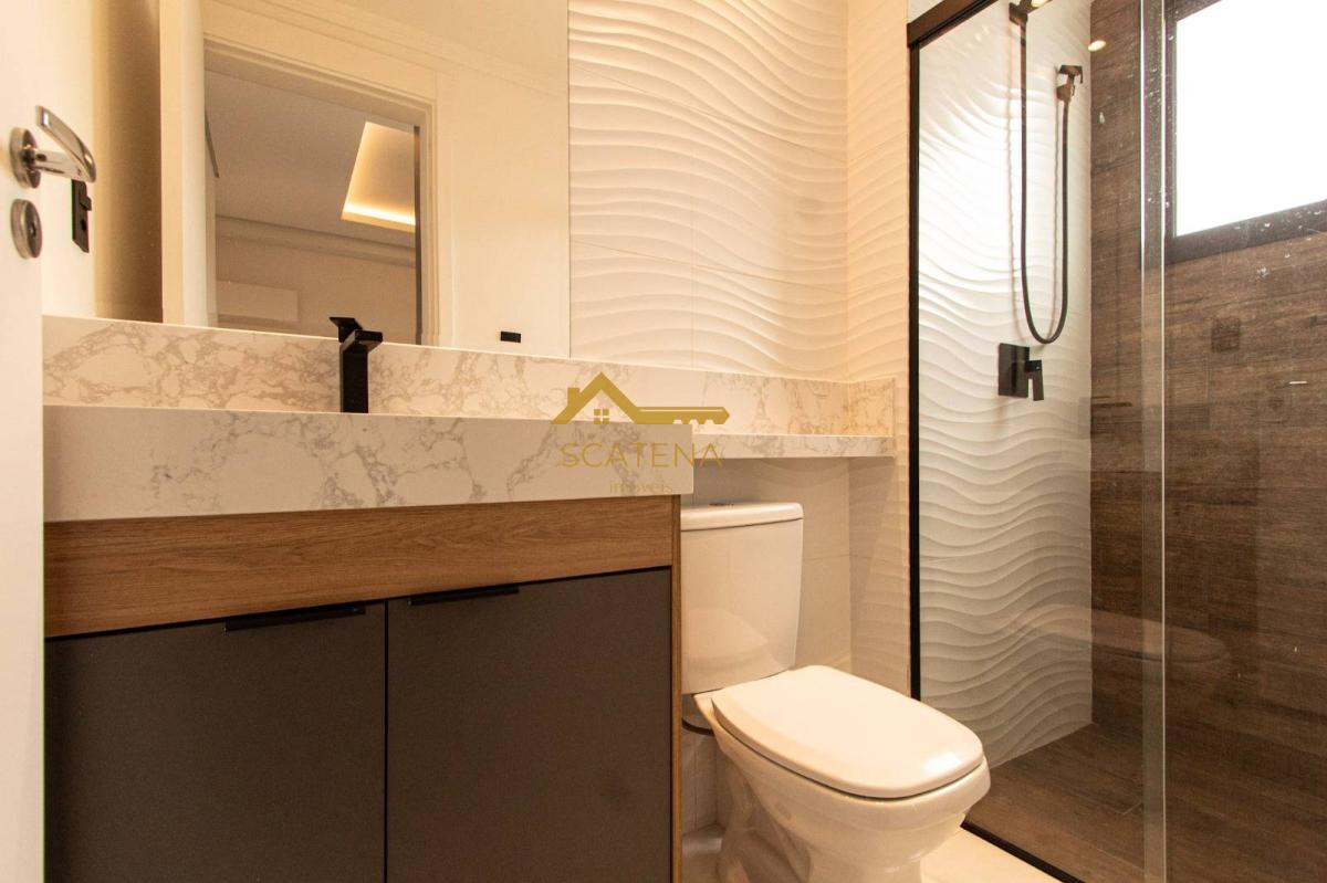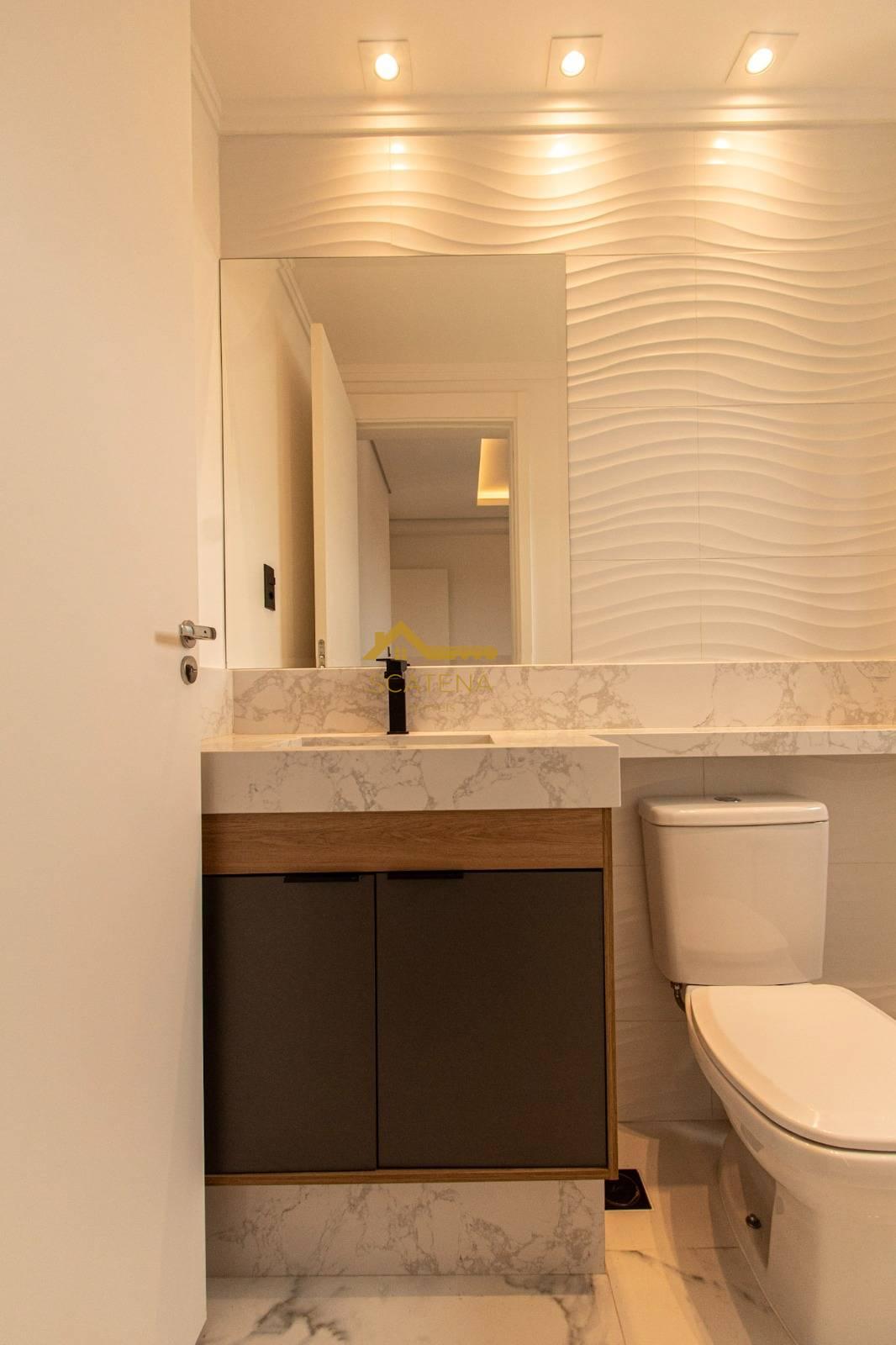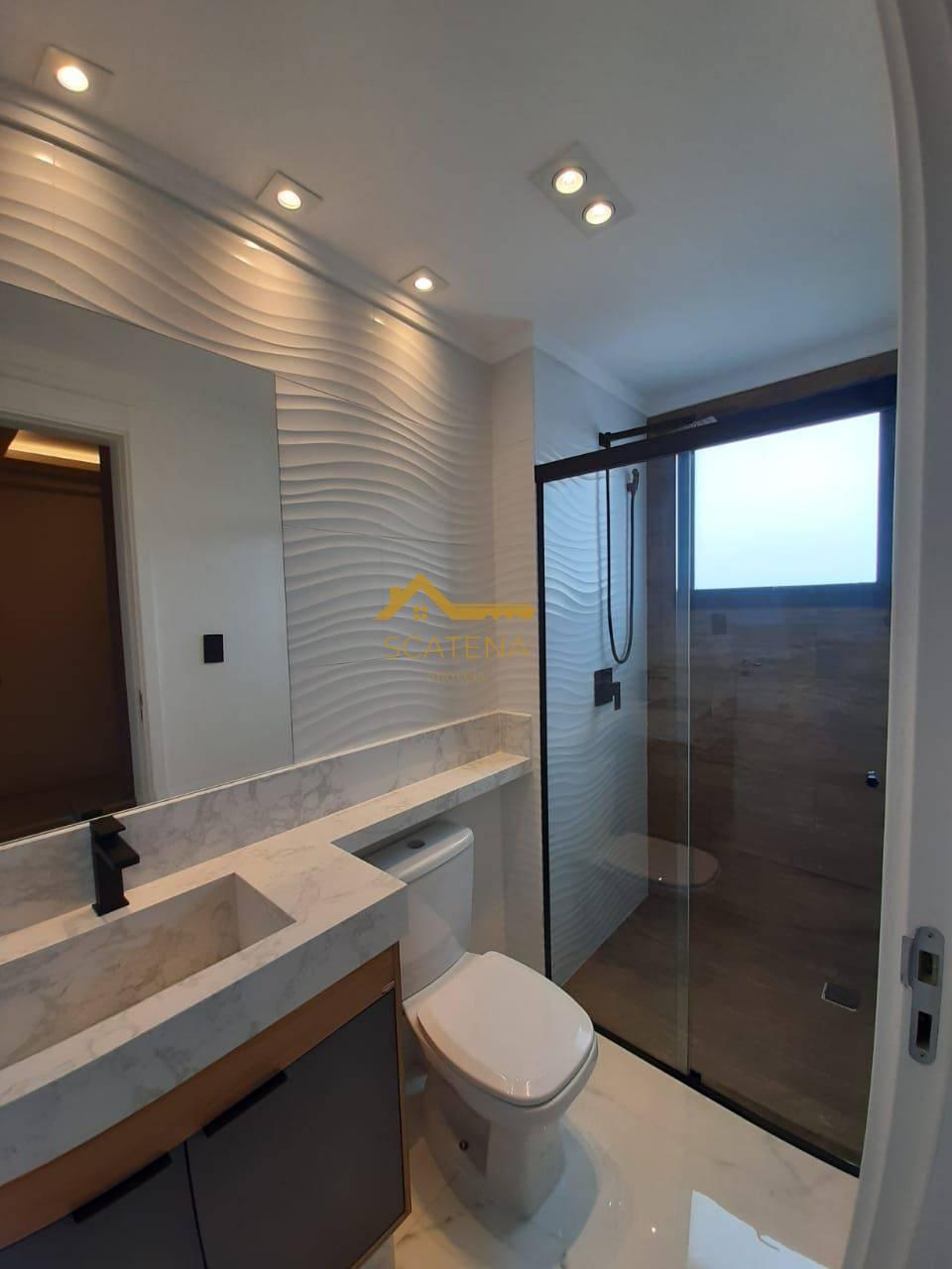 - banheiros com acabamento em revestimento 3D e porcelanato, pia esculpida, Box blindex, chuveiro última geração